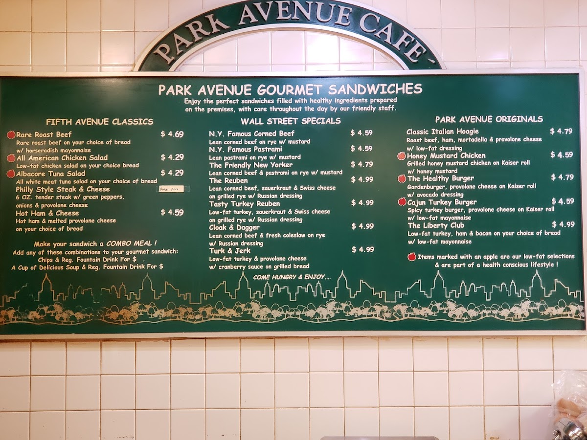 Park Avenue Originals: Featuring a selection of sandwiches and burgers, this group offers a range of hearty meal options including the Classic Italian Hoagie, Honey Mustard Chicken sandwich, The Healthy Burger, Cajun Turkey Burger, and The Liberty Club. These items cater to those looking for convenient and filling lunch choices.
