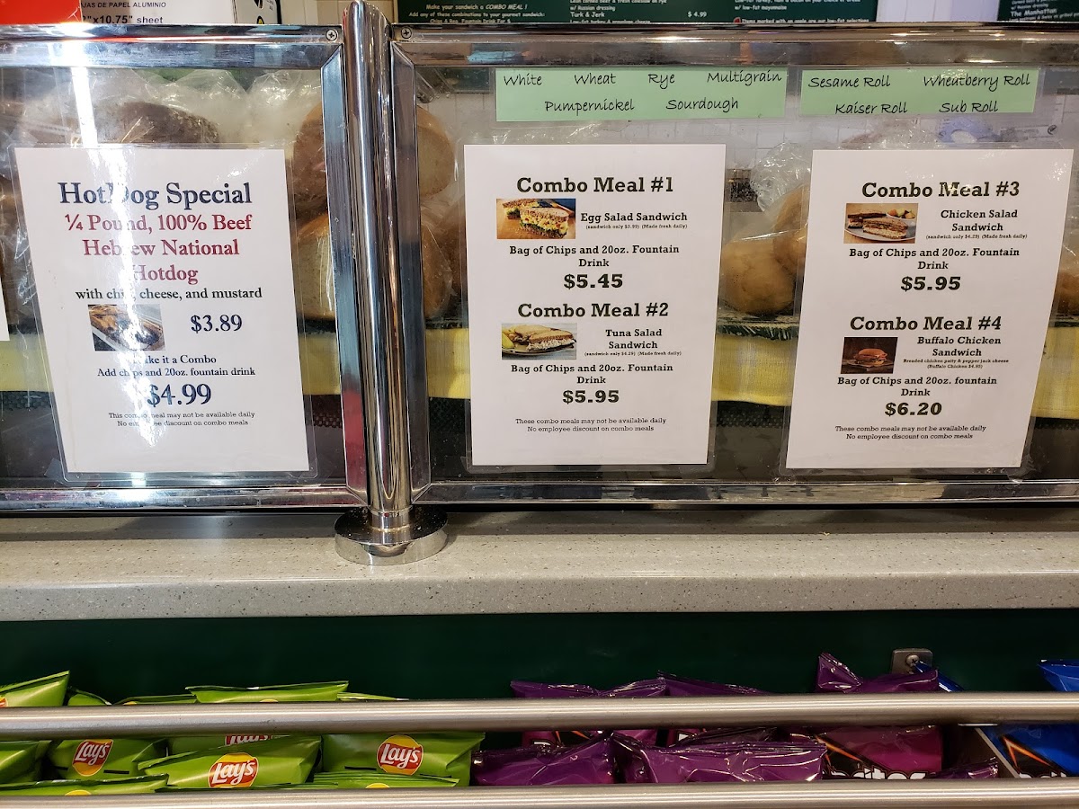 Others: Additional menu items include classic deli-style offerings such as egg salad, tuna melt, The New Yorker Reuben, and The Manhattan sandwiches. This section also includes side options like baked potato wedges and beverage pairings such as 20oz fountain sodas.